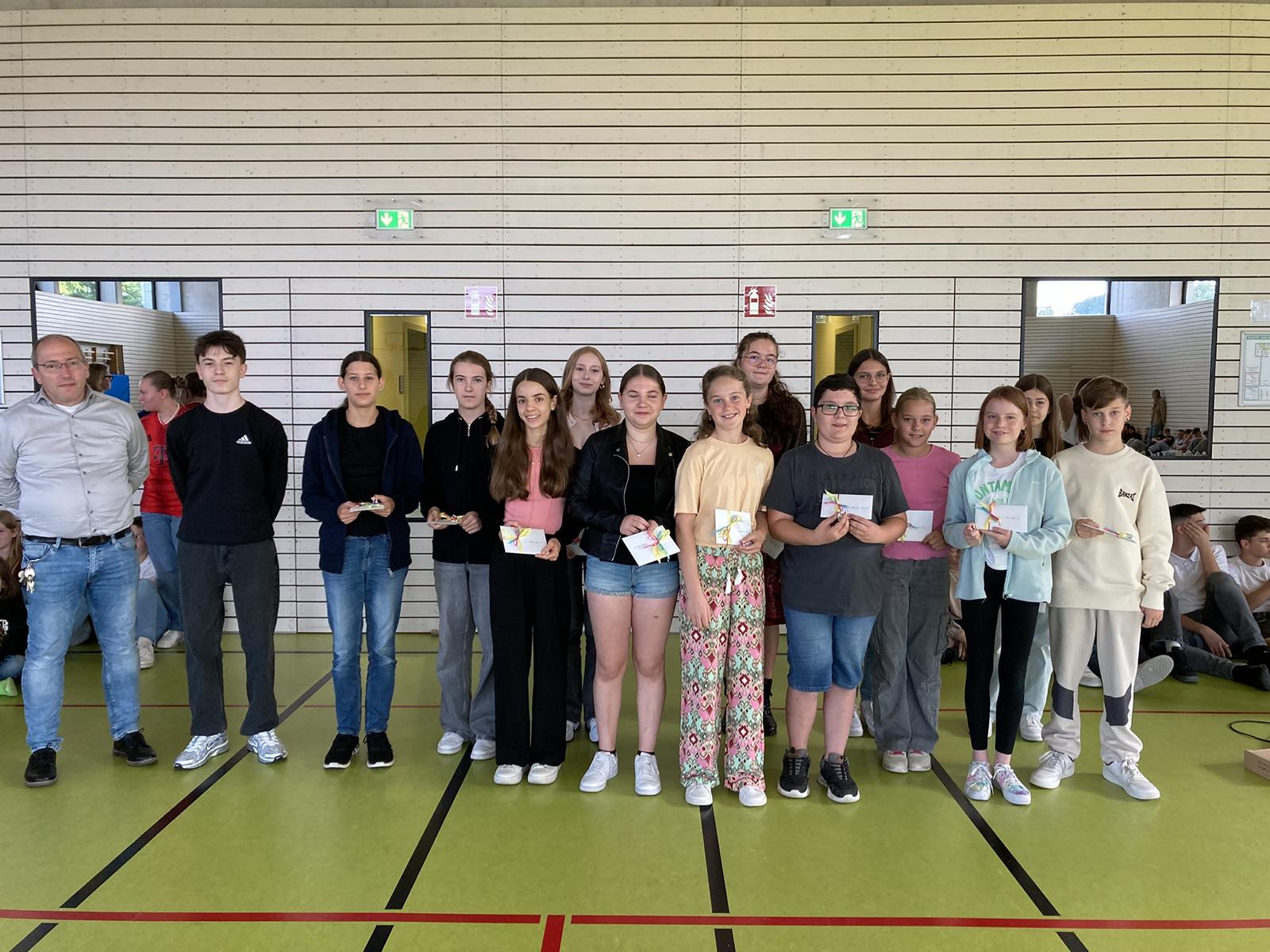 (SE) Am letzten Schultag im Schuljahr 2024/25 – einem Donnerstag – versammelten sich alle Schülerinnen und Schüler der 5. bis 9. Klassen zur Schulversammlung in der Turnhalle.