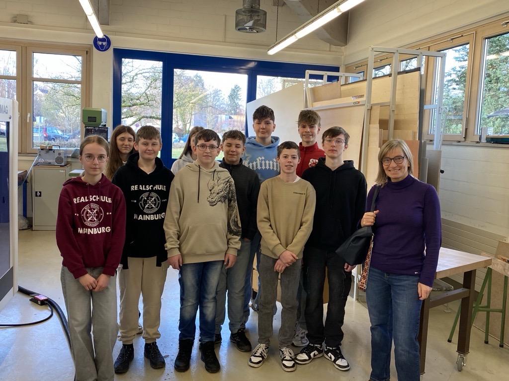 (BB) Im Rahmen eines Unterrichtsganges im Fach Werken durften die Schülerinnen und Schüler der 8a/I vor Kurzem den Lehrlingen des Berufsgrundschuljahres für Schreiner über die Schulter schauen.