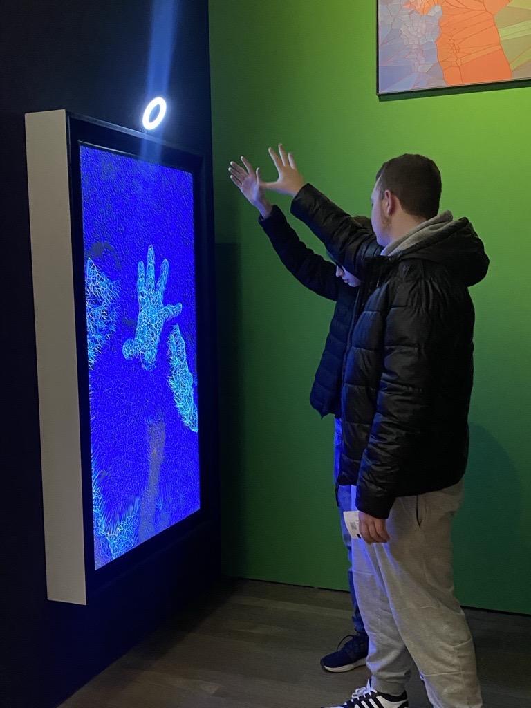 Nach einem kurzen Fußmarsch in die Münchner Innenstadt konnten die Schülerinnen und Schüler in ihrer Mittagspause das weihnachtliche Treiben genießen, bevor der nächste kulturelle Programmpunkt anstand. Beim Besuch der Ausstellung ‚Digital by Nature‘ des franco-mexikanischen Künstlers Miguel Chevalier in der Kunsthalle tauchten sie in die digitale Welt von Algorithmen und Farben ein. Die Besucher werden in diesem immersiven Kunsterlebnis unter anderem aufgefordert, durch ihre Bewegungen mit den Bildern zu interagieren. Ein besonderes Highlight der Ausstellung war auch In Vitro Pixel Flowers, bei dem unsere Schülerinnen und Schüler auf Computern vor Ort mit virtuellen Blumen experimentieren konnten, die dann in einem digitalen Gewächshaus im Ausstellungsraum erblühten.