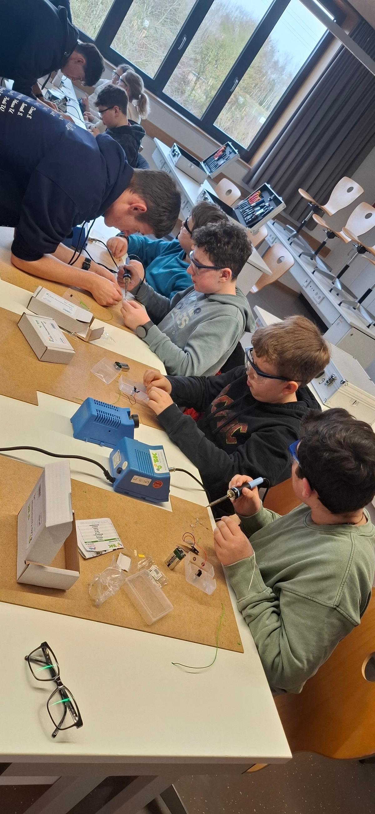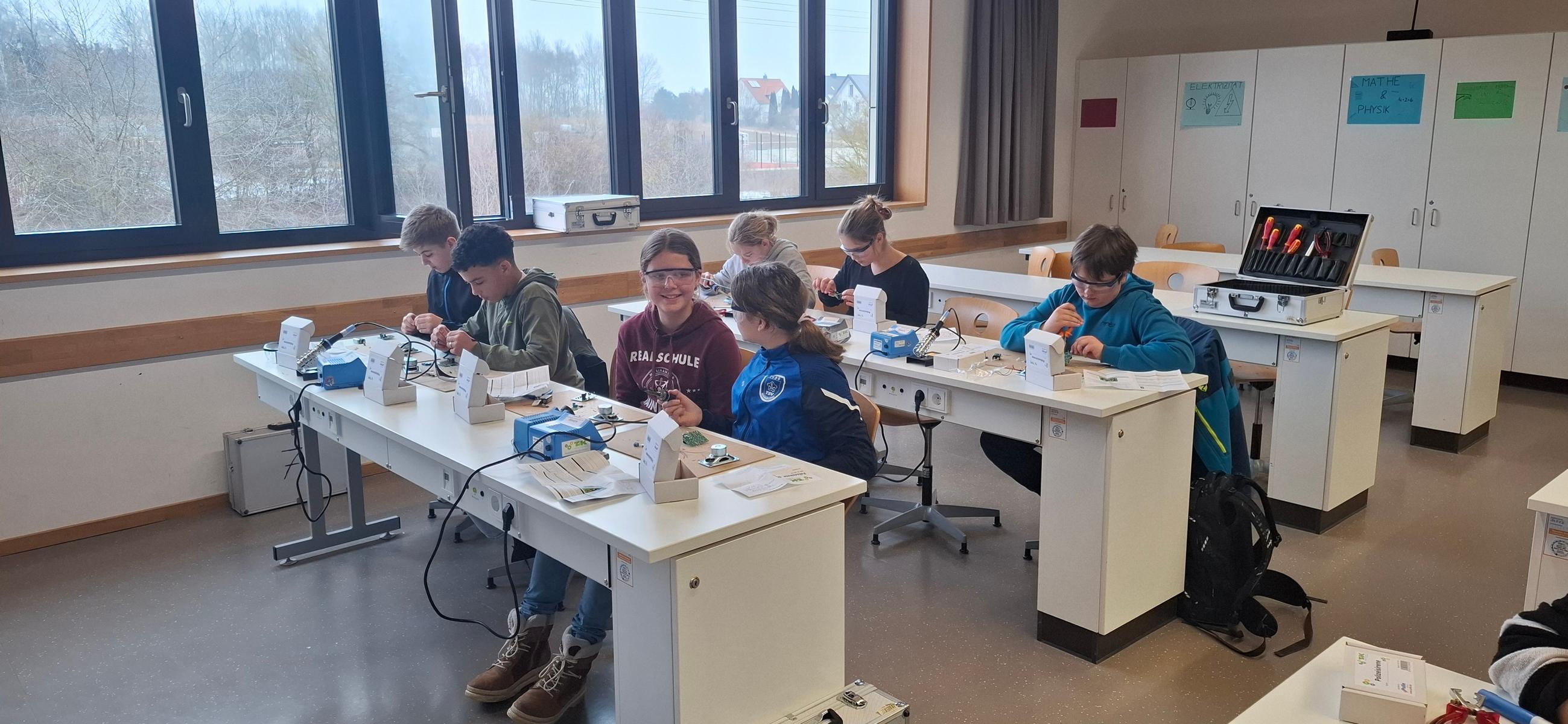 (WK) Von Dezember 2025 bis Februar 2026 wurde im Physiksaal der Realschule Mainburg erstmals eifrig getüftelt, gelötet und gebaut: