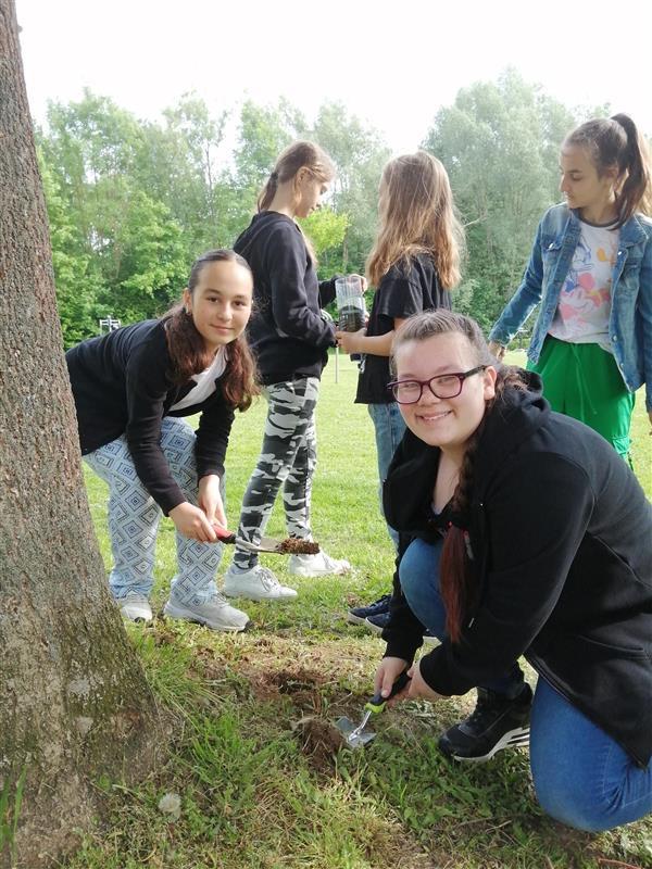 Am anderen Tag befassten sich die Sechstklässler mit dem Thema „Boden” und wie lebenswichtig eine gesunde Erde für Mensch, Tier sowie Natur ist. Hier durften die Schülerinnen und Schüler zunächst einmal selbst tätig werden und - mit Schaufel und Plastikflaschen ausgestattet – einen Bodenaufbau nachbilden, um dessen Filterfunktion zu erforschen.