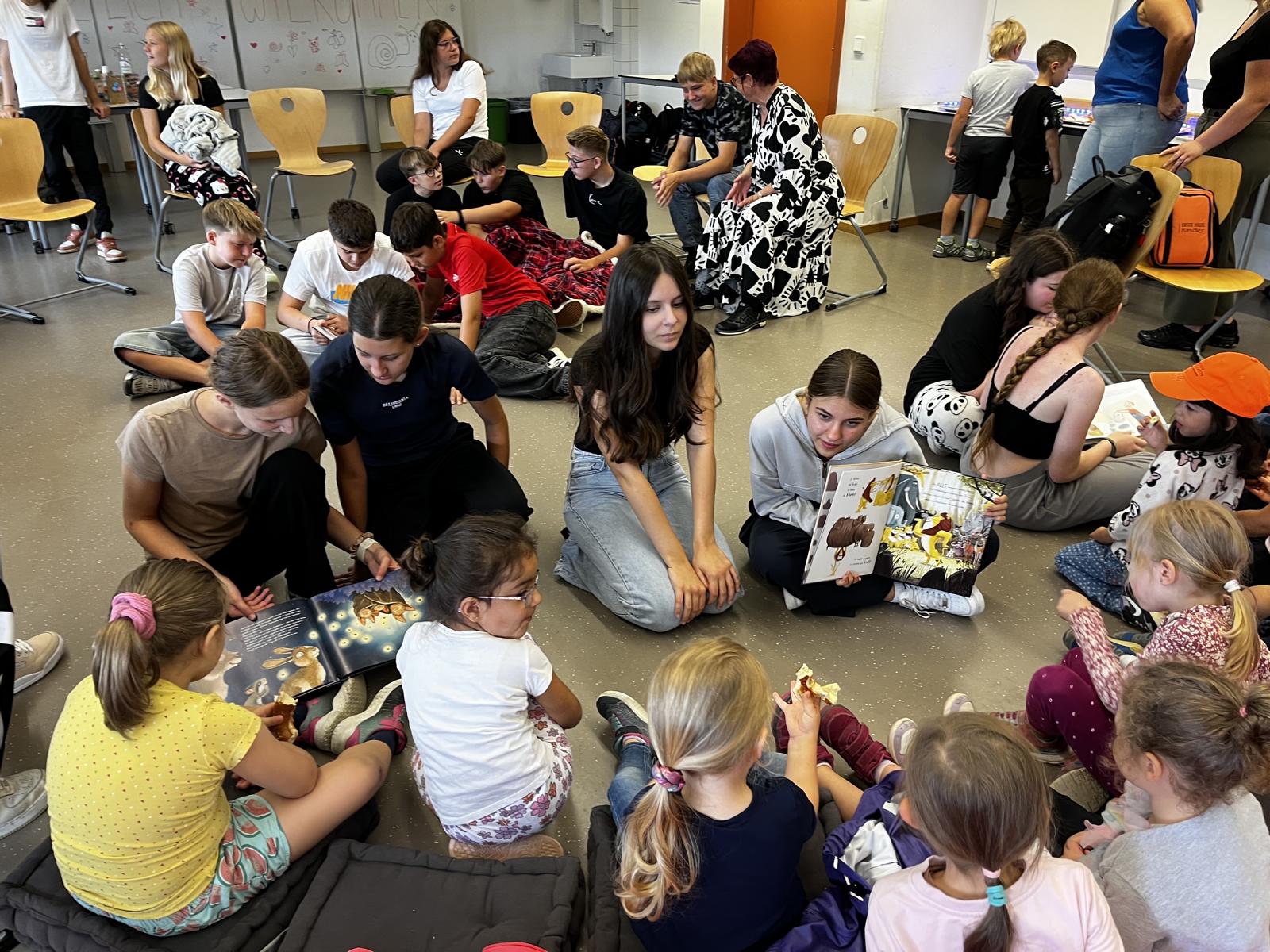 Monat für Monat lasen jeweils zwei Schüler der Realschule Mainburg den Kindergartenkindern aus ausgewählten Bilderbüchern vor. Diese regelmäßigen Treffen schufen nicht nur eine schöne Verbindung zwischen den älteren und jüngeren Kindern, sondern förderten auch spielerisch das gemeinsame Erleben von Geschichten und Sprache.