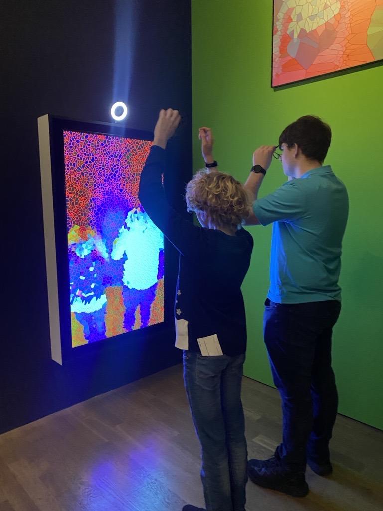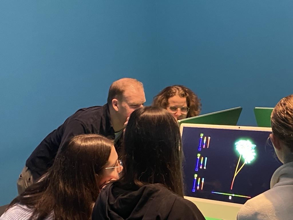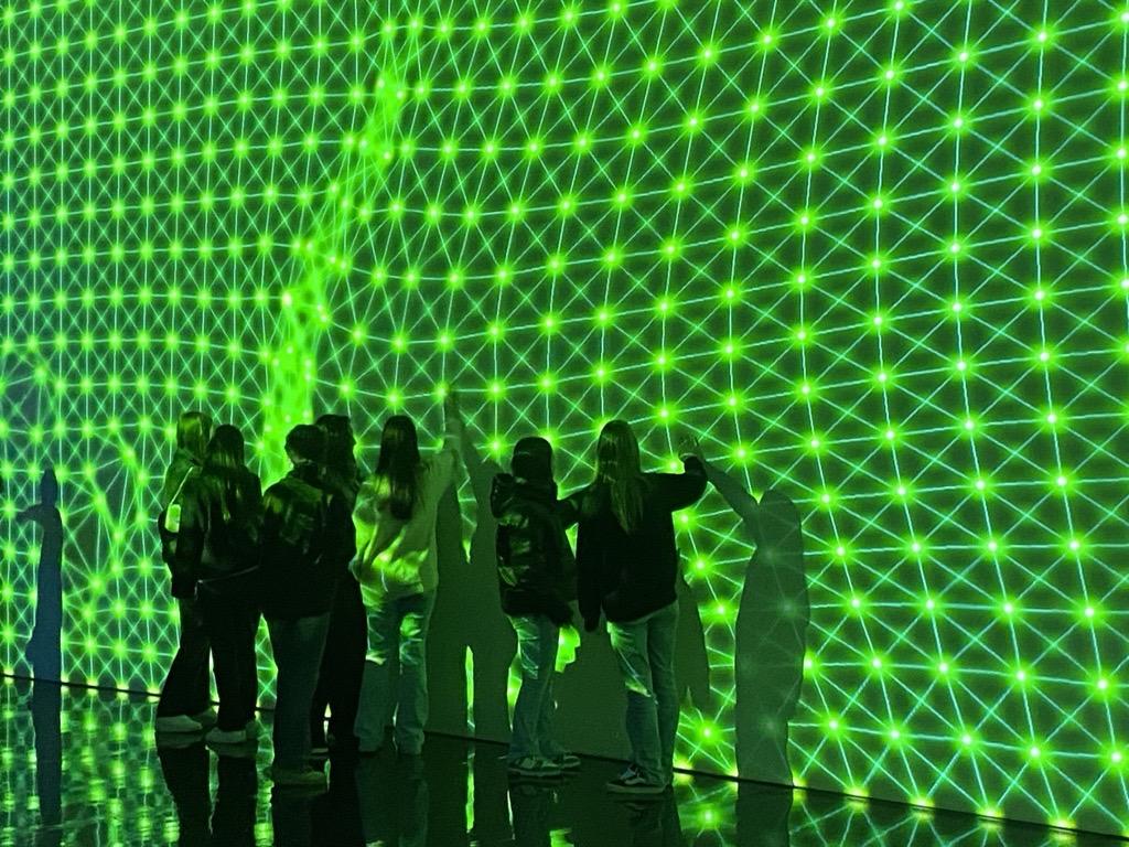 Nach einem kurzen Fußmarsch in die Münchner Innenstadt konnten die Schülerinnen und Schüler in ihrer Mittagspause das weihnachtliche Treiben genießen, bevor der nächste kulturelle Programmpunkt anstand. Beim Besuch der Ausstellung ‚Digital by Nature‘ des franco-mexikanischen Künstlers Miguel Chevalier in der Kunsthalle tauchten sie in die digitale Welt von Algorithmen und Farben ein. Die Besucher werden in diesem immersiven Kunsterlebnis unter anderem aufgefordert, durch ihre Bewegungen mit den Bildern zu interagieren. Ein besonderes Highlight der Ausstellung war auch In Vitro Pixel Flowers, bei dem unsere Schülerinnen und Schüler auf Computern vor Ort mit virtuellen Blumen experimentieren konnten, die dann in einem digitalen Gewächshaus im Ausstellungsraum erblühten.